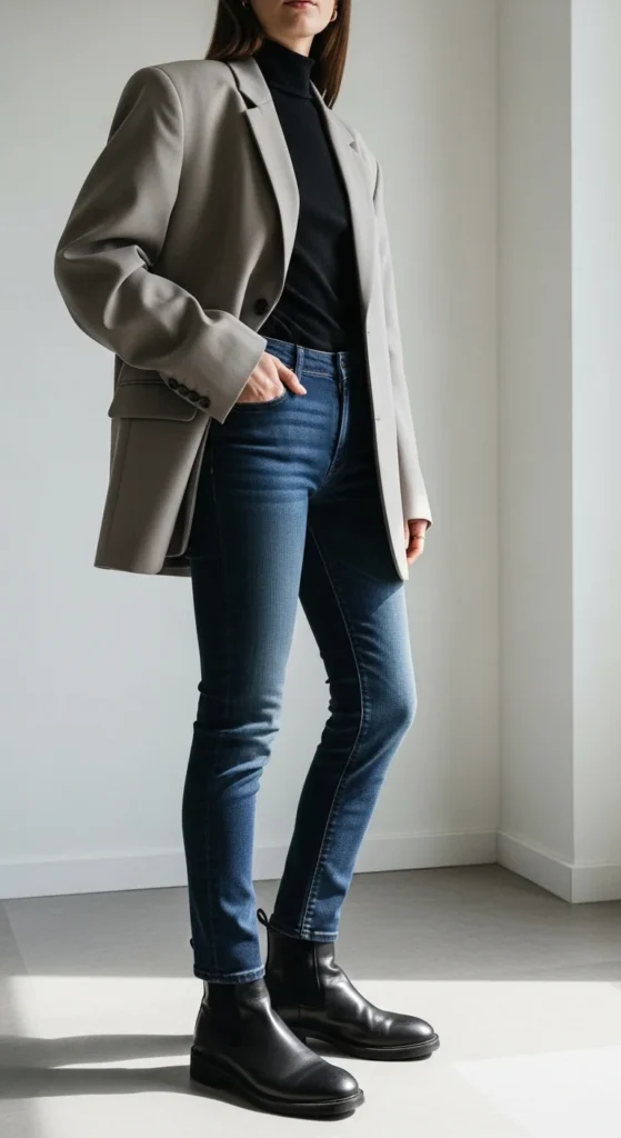 The magic lies in the balance: structured blazer + relaxed denim. Get that right, and you’ll nail effortless style every time.