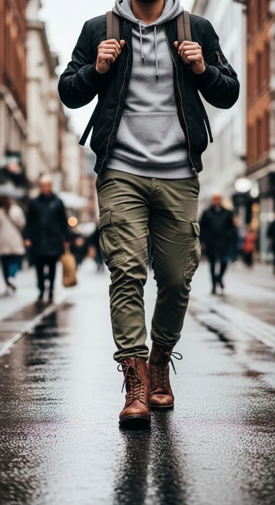 Cargos and joggers were basically made for combat boots. The silhouette feels intentional, and you don’t have to overthink it.
