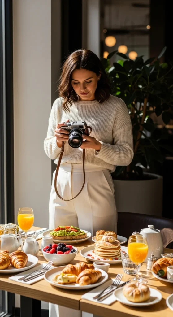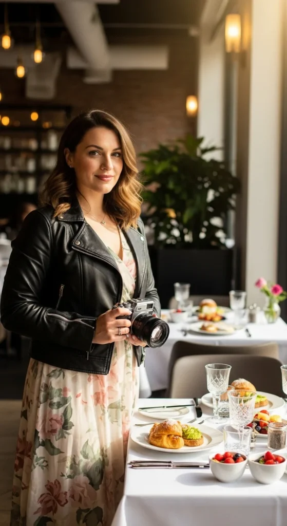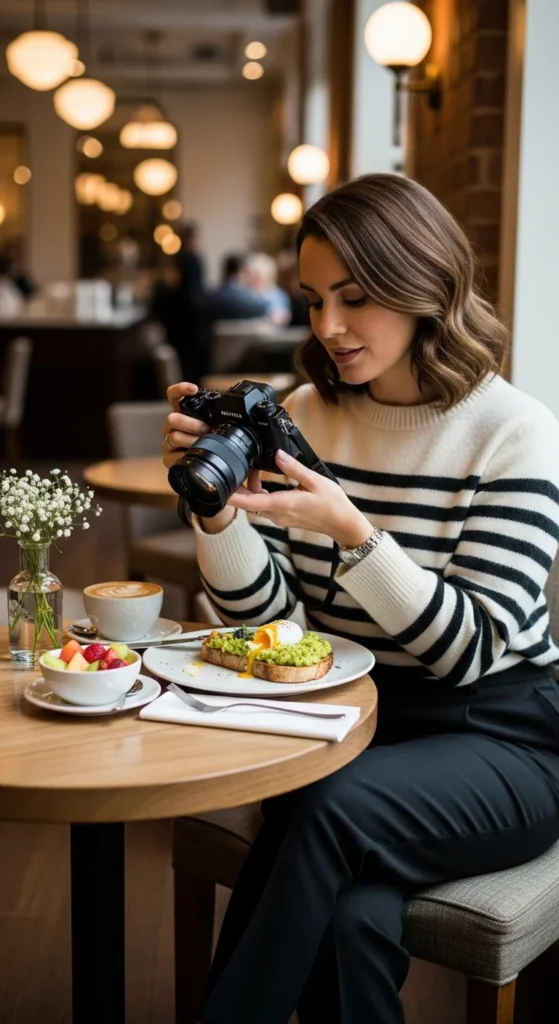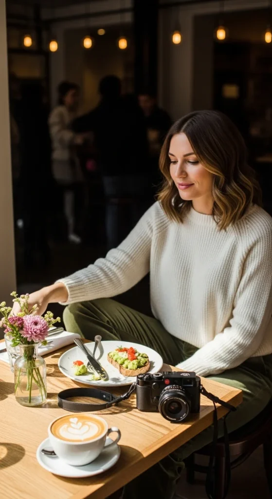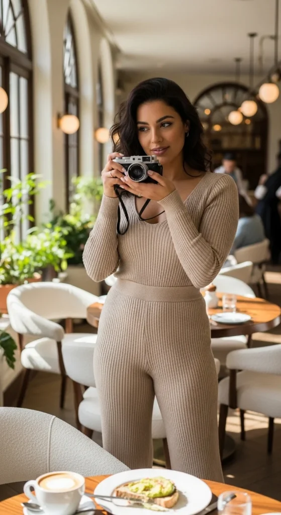 This outfit is easy to build using basics from your closet. It feels calm, stylish, and comfortable for long conversations at the table. Neutral monochrome outfits also photograph well in soft natural light.