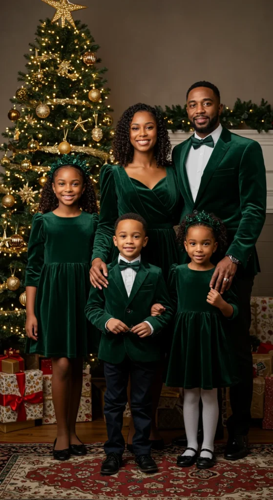 Velvet feels seasonal and rich in photos. Just one or two velvet pieces can tie the family look together.