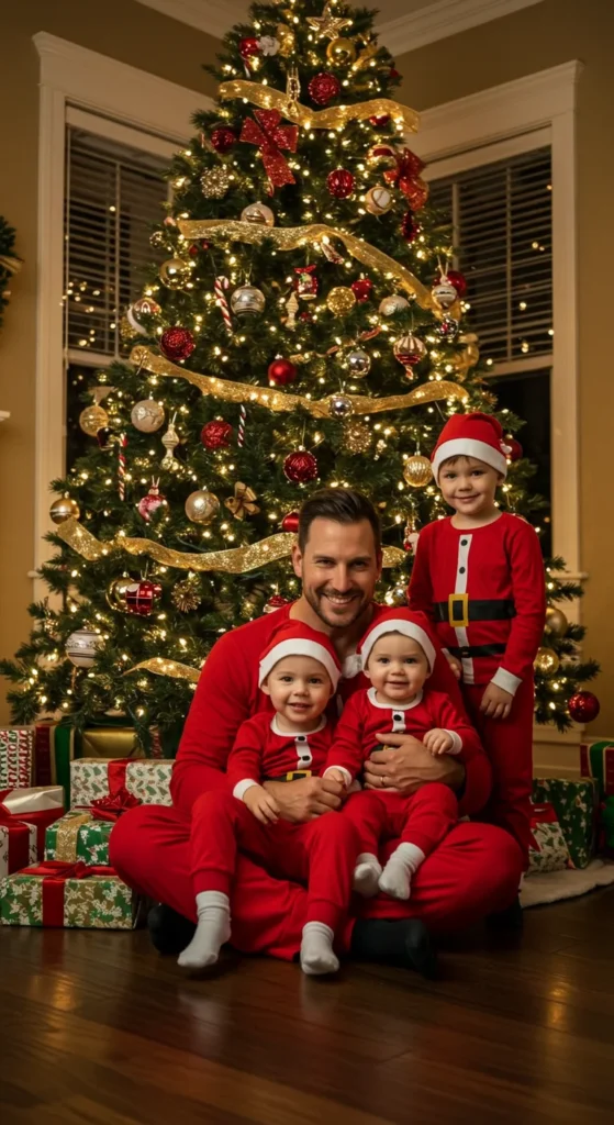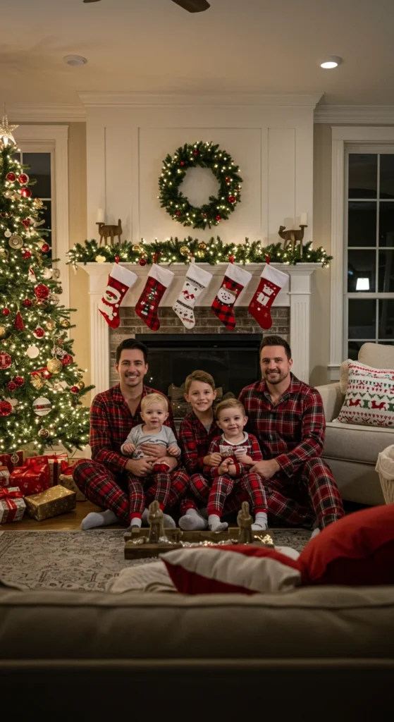 Family photos look polished when everyone layers robes over simple PJs. It’s cozy, affordable, and perfect for cold Christmas mornings.
