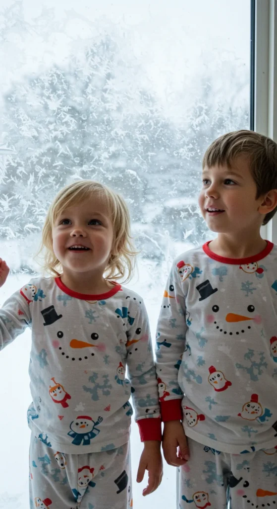 DIY tip: stencil snowflakes onto plain shirts using fabric paint. Even mismatched sets can look unified with repeating snowflake accents.