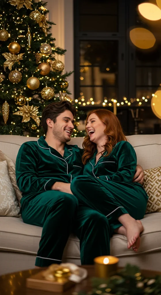 Velvet pajamas are stylish for photos yet cozy for lounging.
