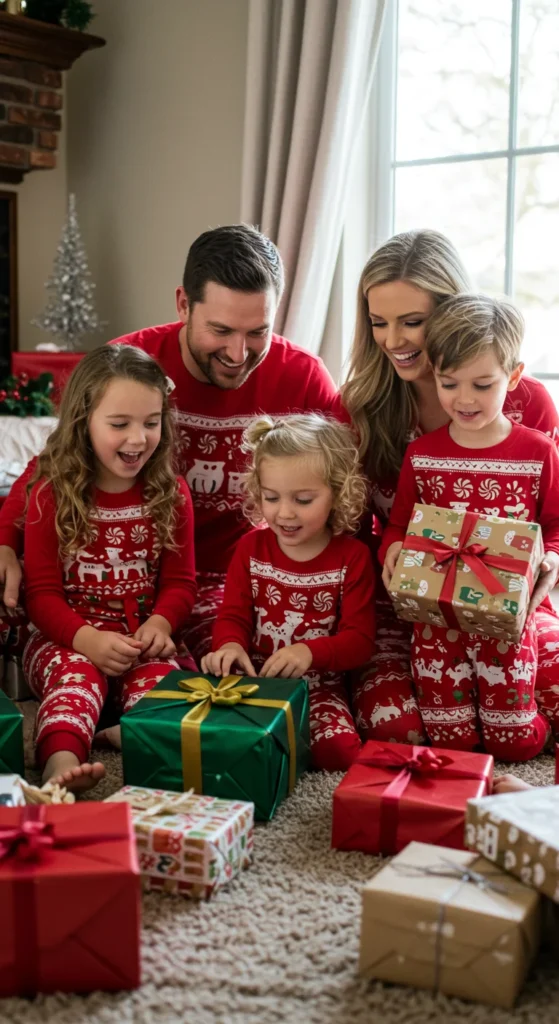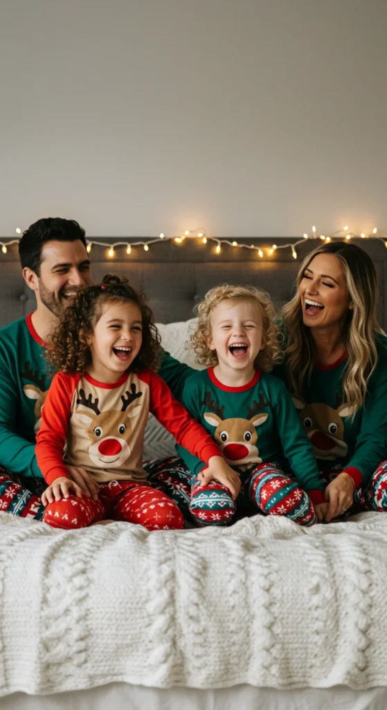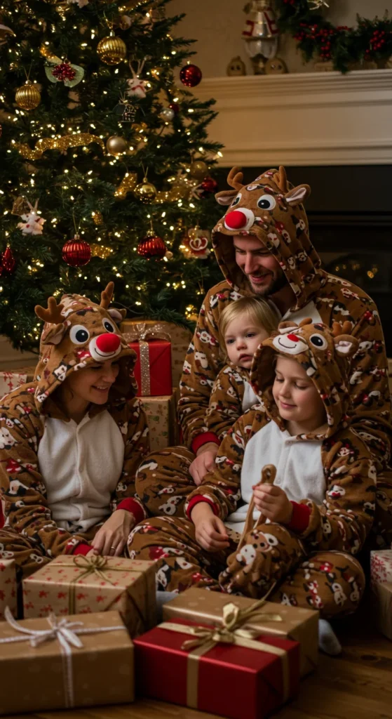 Add reindeer headbands as photo props for a cheerful finish. Reindeer pajamas make the season feel magical, especially for kids.