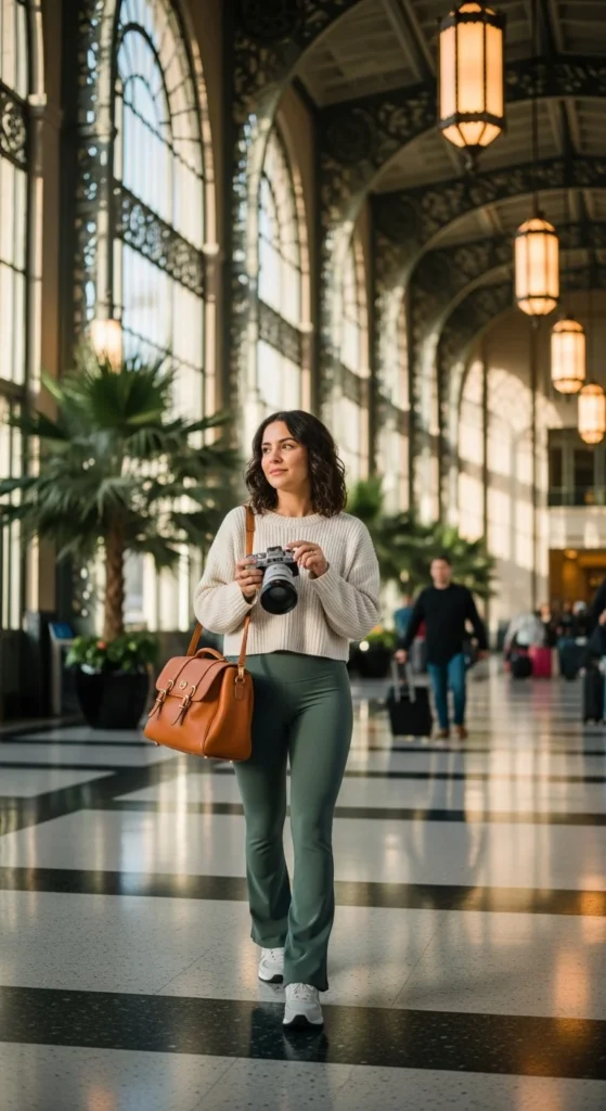 This mix of casual and structured creates a nice balance for travel days. It looks polished but still allows movement.