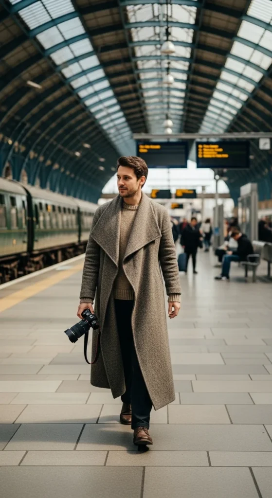 If you don’t own a long coat, use any longer cardigan or jacket you already have. Even a thick shawl can replace the outer layer. Keep accessories minimal so the outfit stays light and easy during your journey.