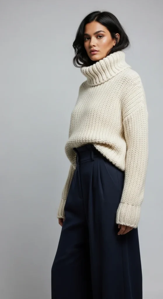 3. Chunky Turtleneck With Wide-Leg Trousers