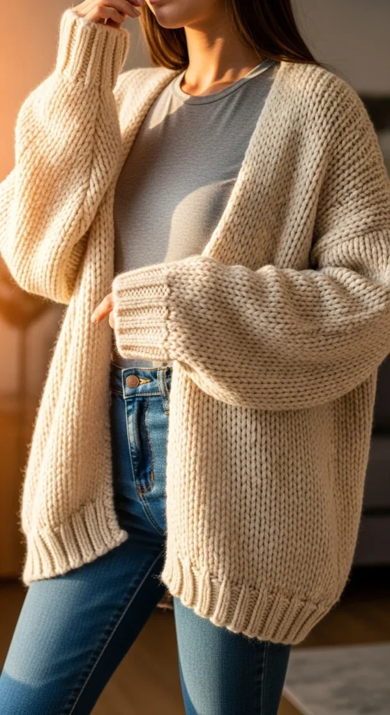 6. Chunky Cardigan With a Basic Tee and Jeans