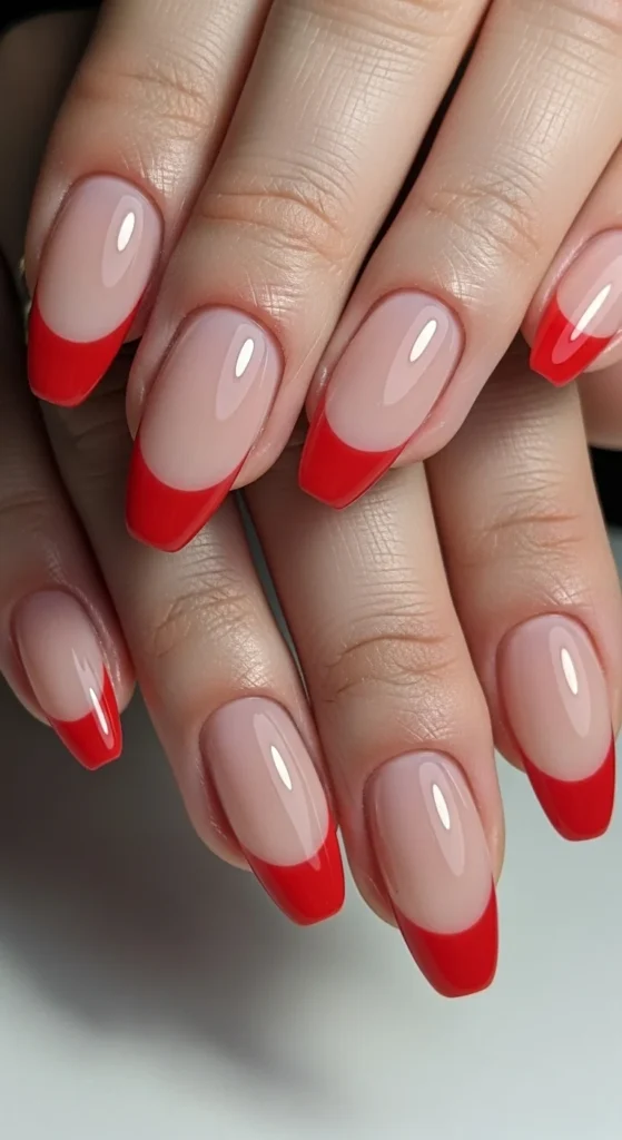 Red tips are bold but controlled. Keep the base neutral and the tip slim.