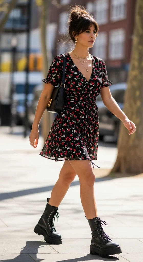 • Floral mini + combat boots