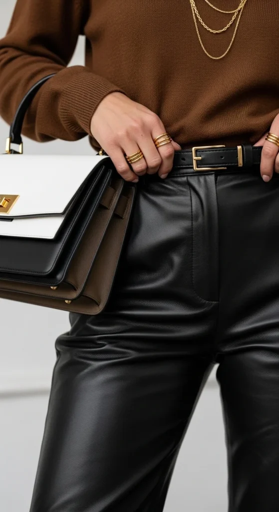 The secret? Balancing leather’s bold texture with softer pieces, elegant footwear, and thoughtful accessories.