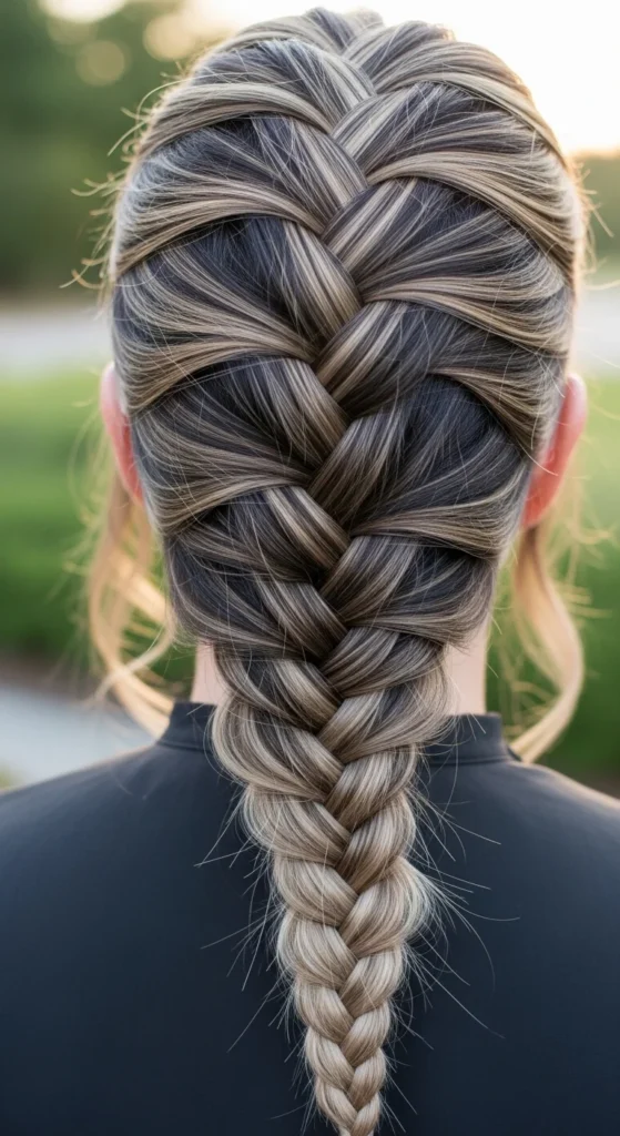 If you want a softer vibe, widen the braid slightly and leave one small strand near the ear. If you want a sporty vibe, keep the braid tight and smooth.