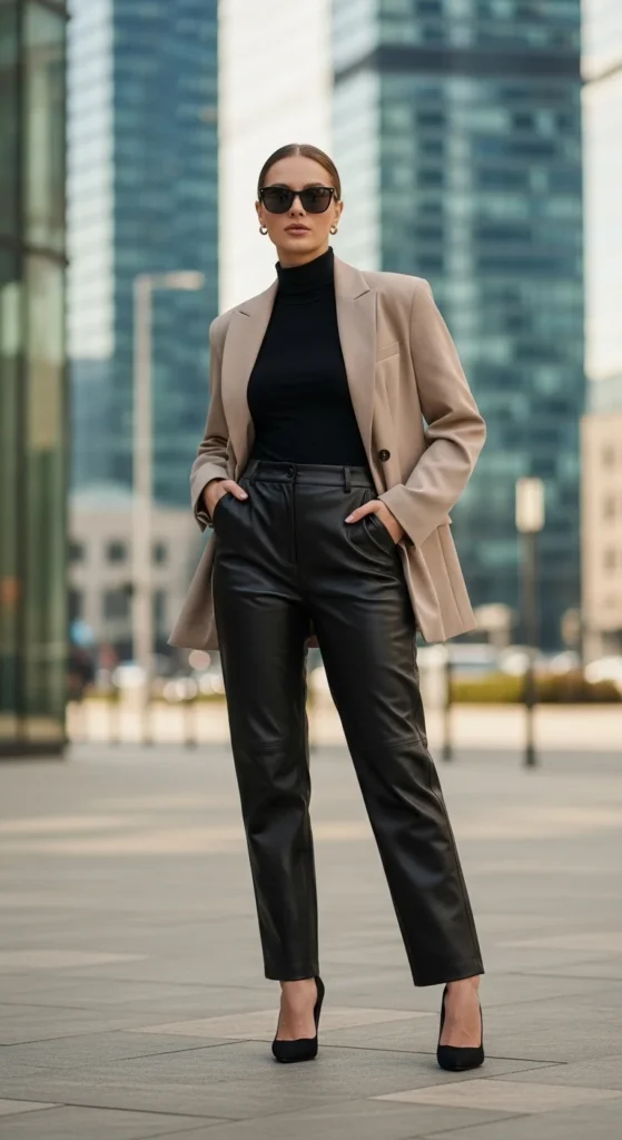 If you’ve ever felt leather pants looked too bold or hard to style, you’re not alone. The secret is texture contrast + smart layering. Below, you’ll find easy, Pinterest-worthy outfit formulas you can copy all season long.