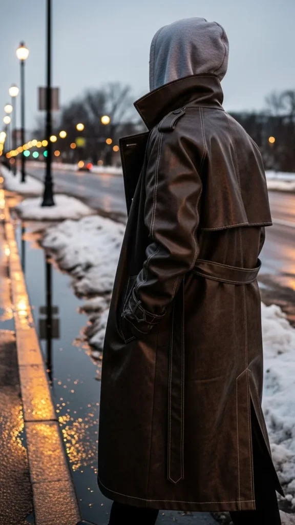 A trench adds drama. The hoodie keeps it grounded. Pair with denim or tailored trousers. Add sleek boots. This pairing suits winter dinners or creative workdays. Faux-leather trenches are eye-catching and warm. The hoodie softens the seriousness of the coat.