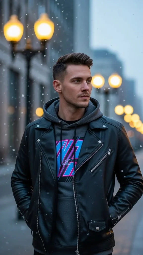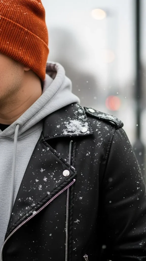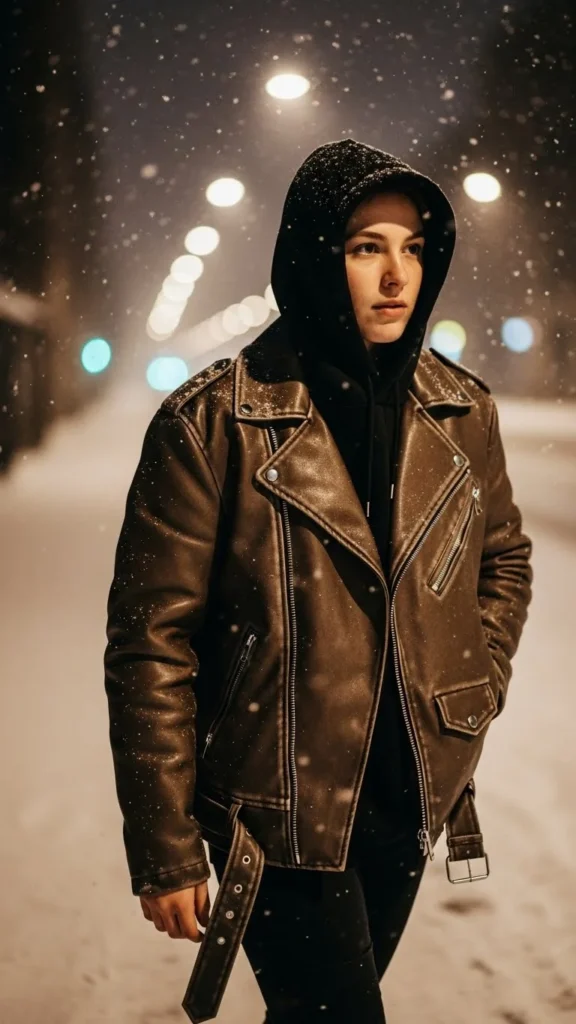 Faux-leather jackets and hoodies create a winter wardrobe foundation that’s warm, expressive, and simple to style. Their contrast in texture allows countless combinations using pieces you already own or can find affordably. Try mixing fitted and oversized layers, experimenting with colour accents, or adding scarves, boots, and simple accessories. These ideas help you craft winter outfits that feel confident, comfortable, and ready for anything the cold throws your way.