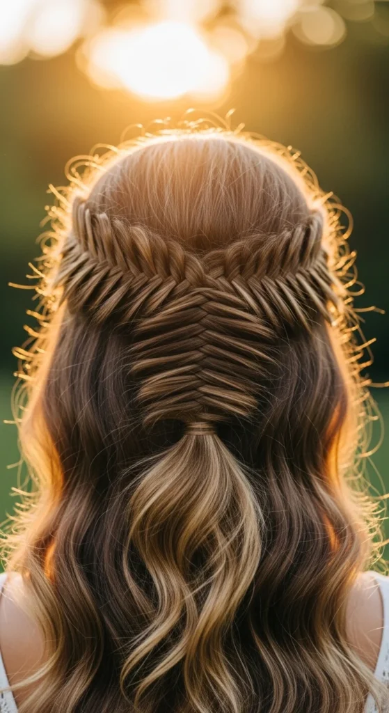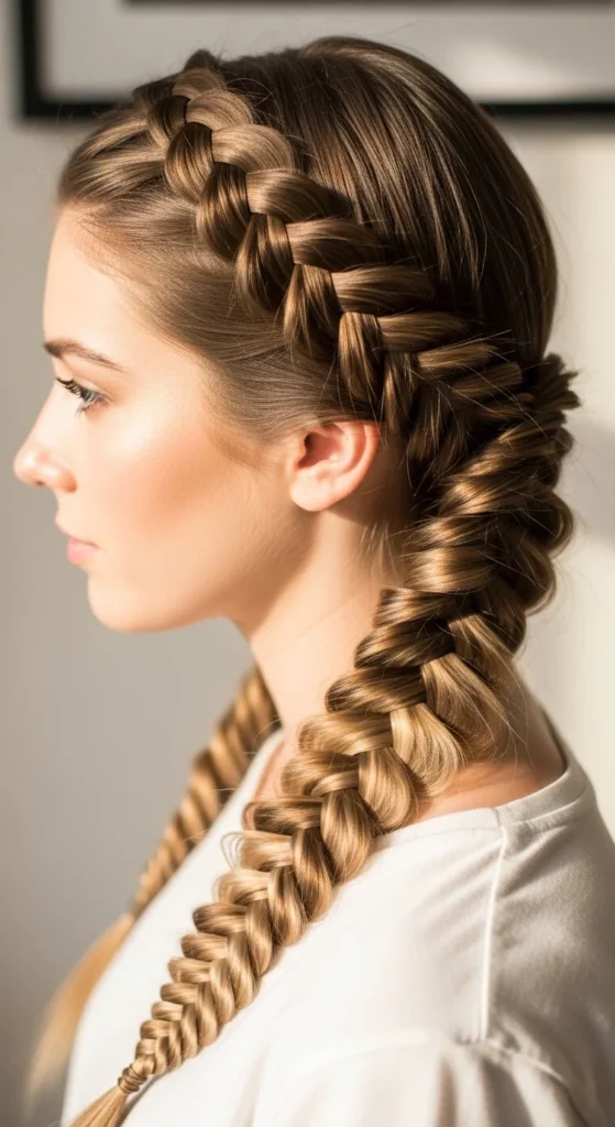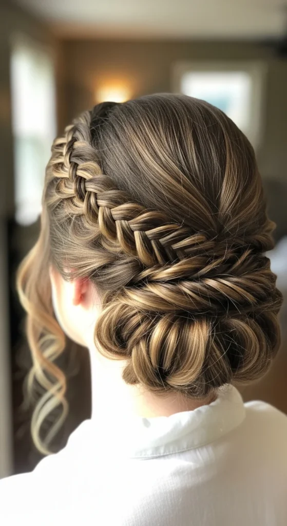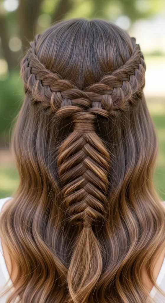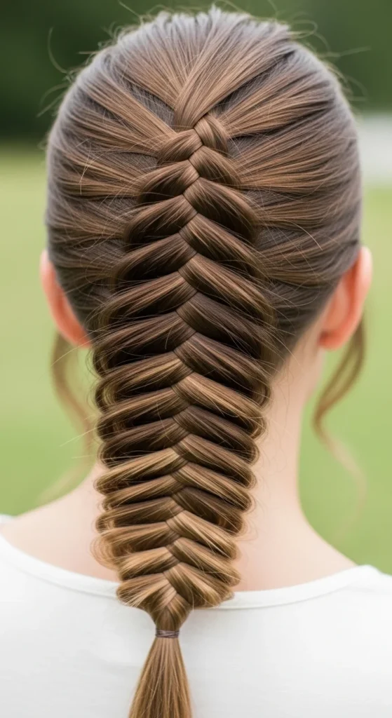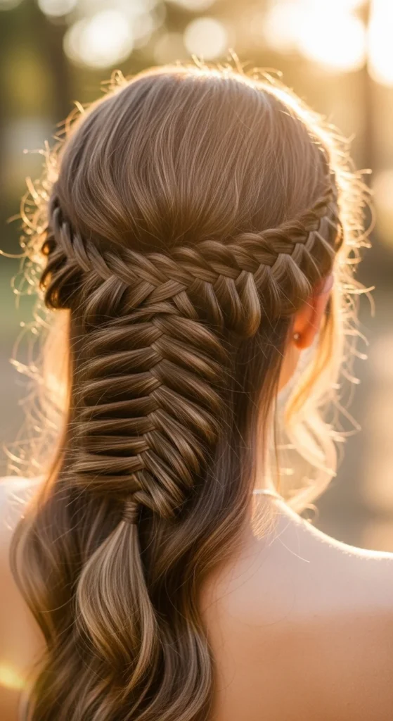 This style is great for parties and photos because it looks complex. Start with a slightly loose fishtail so you have more braid “body” to pin upward.