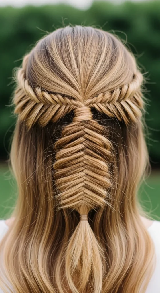 Budget tip: If doing full fishtails is slow, do regular three-strand braids for the side ones and keep the center as a fishtail. It still looks detailed.