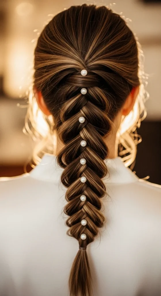 14. French Braid with Pearl Pins