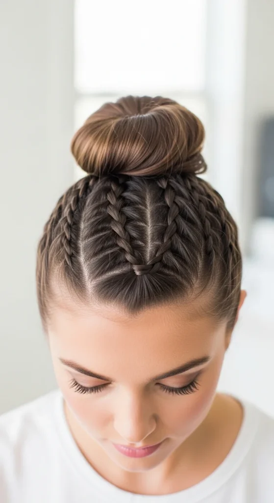 15. French Braid Topknot (Upward Weave)