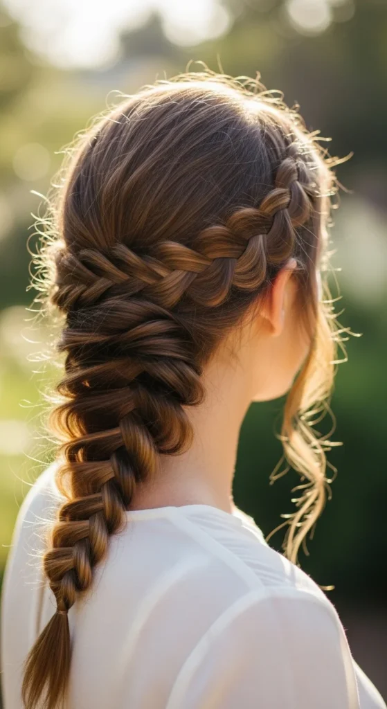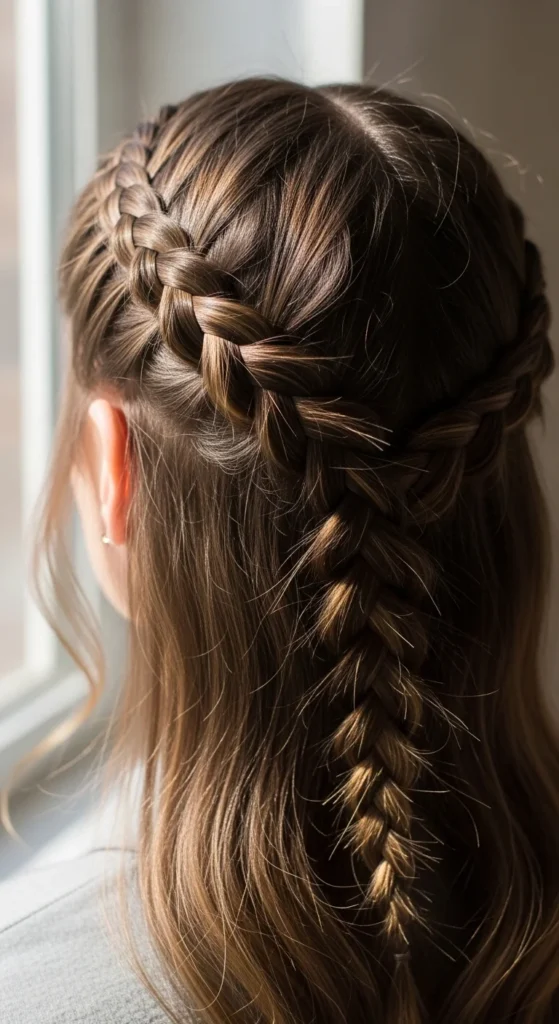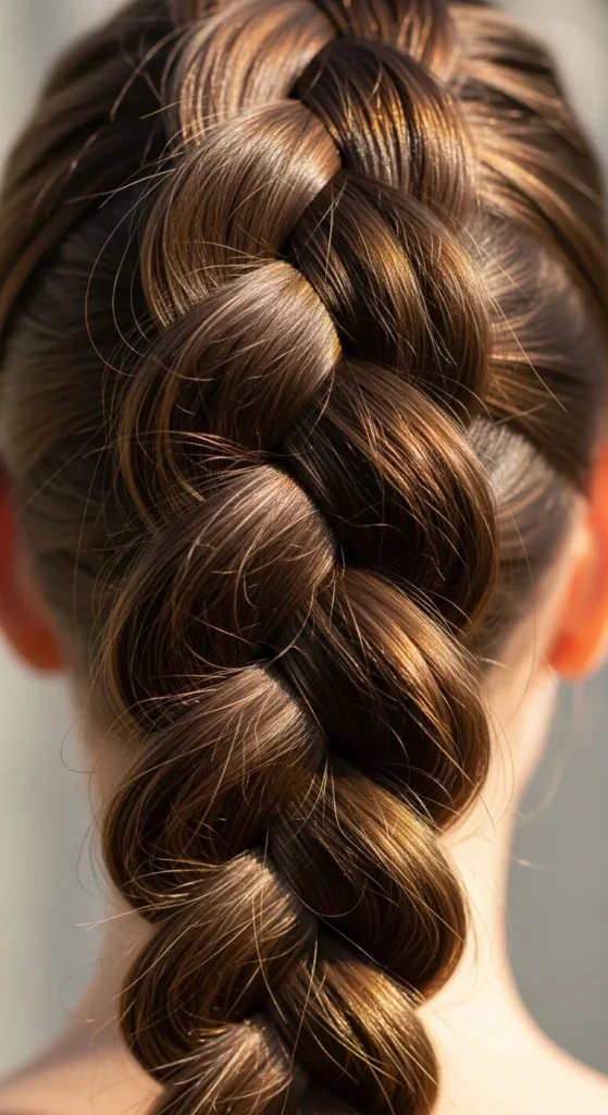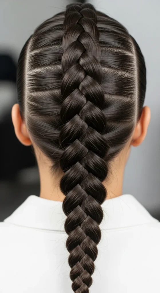 This is the timeless version that always looks neat. It’s perfect when you want hair controlled and smooth. Start by brushing your hair fully, especially at the crown. A clean base makes the braid look sharp.