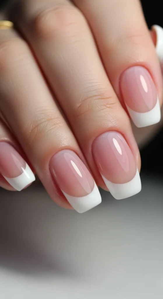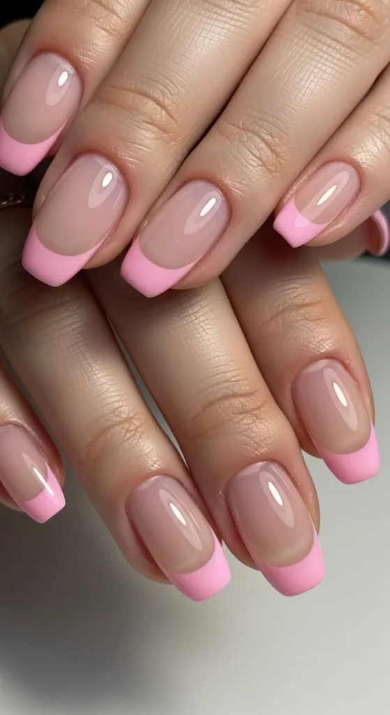 Pale pink tips feel gentle and clean. Pink shades hide chips well and work for daily wear.
