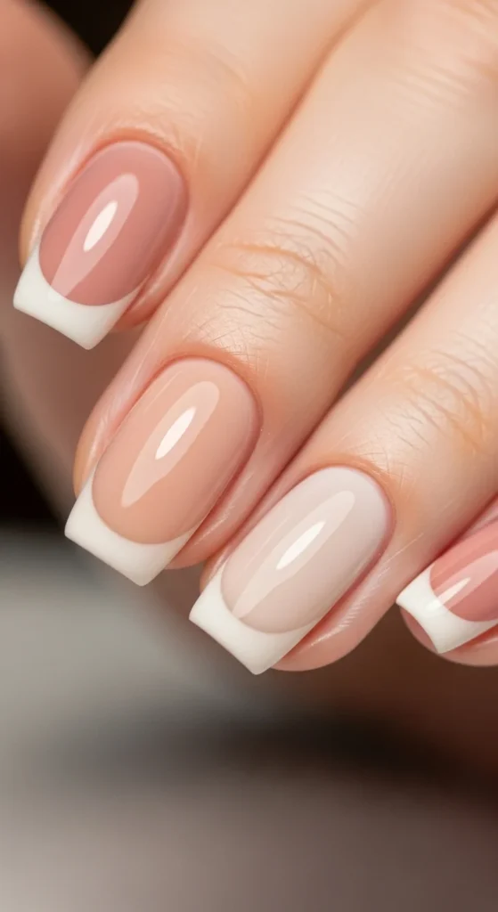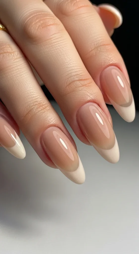 Instead of white, this style uses beige or blush tones for the tip. The contrast stays gentle and wearable. Choose a tip shade slightly deeper than your base. You can mix two nude polishes at home to create the right tone. This style hides chips better and suits daily wear.