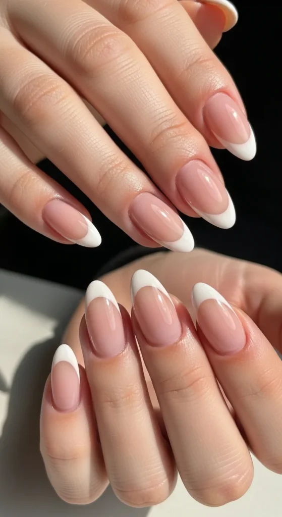 Micro white tips use an extra-thin white line right at the edge. The result feels clean and calm. This works especially well on short nails and grows out neatly. For DIY, wipe excess polish from the brush before painting. A sheer pink or clear base keeps it light. Skip nail guides and clean edges with a toothpick dipped in remover to save money.