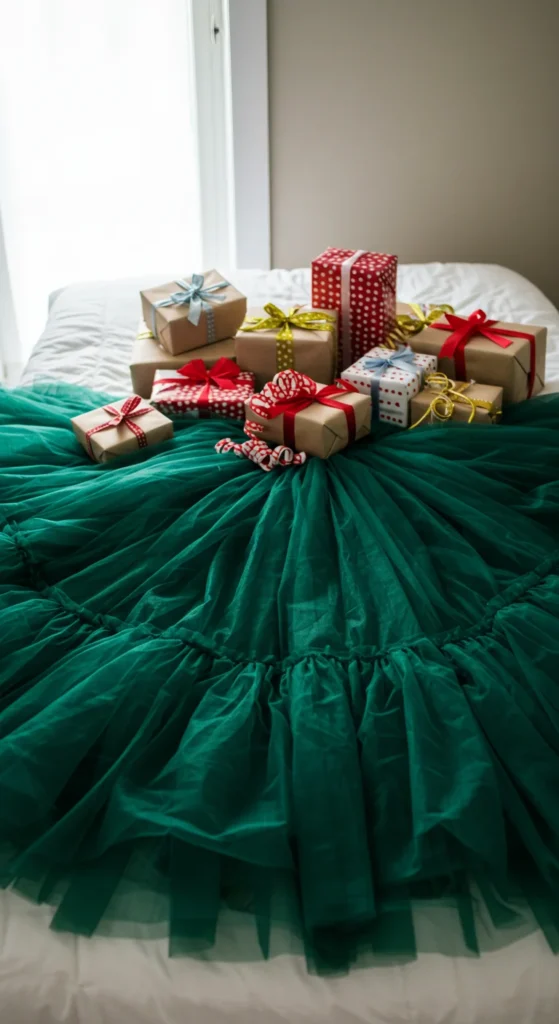 A tulle skirt feels playful for the holidays. Pair it with a fitted top or sequined blouse. For DIY, make your own skirt using elastic and layers of tulle. Style with flats or sparkly heels.