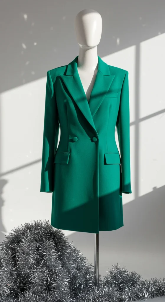 A blazer dress in green feels polished and stylish. Wear it with pointed heels or tall boots. If buying new feels too expensive, layer a long blazer over a fitted dress. Add bold earrings for a statement.