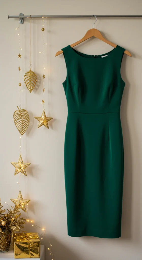A velvet dress in emerald green feels holiday-ready without much effort. Pair it with black tights, gold heels, or even simple ankle boots. For budget-friendly styling, check thrift stores—velvet holds up beautifully. Add a thin belt for extra shape. If you want DIY flair, sew on rhinestone buttons or use a brooch for a glamorous touch.