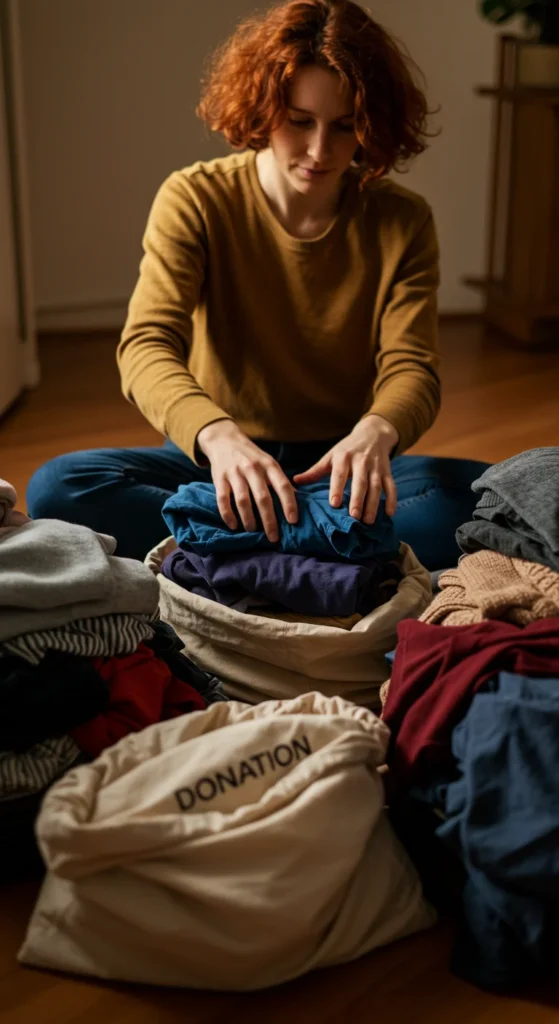* Create three piles: **Keep**, **Donate**, and **Maybe**.