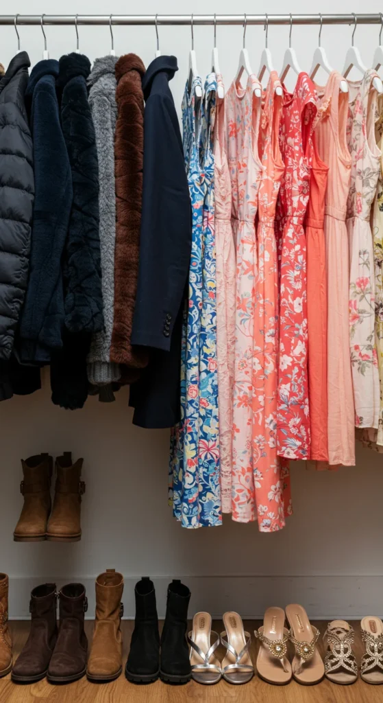 This keeps your wardrobe functional all year without overstuffing your closet.