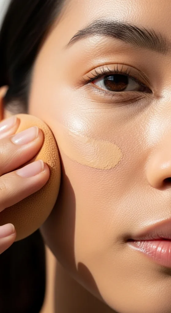 This is the step that decides whether the look reads “skin” or “makeup.” Go sheer and keep it focused on the center of your face.