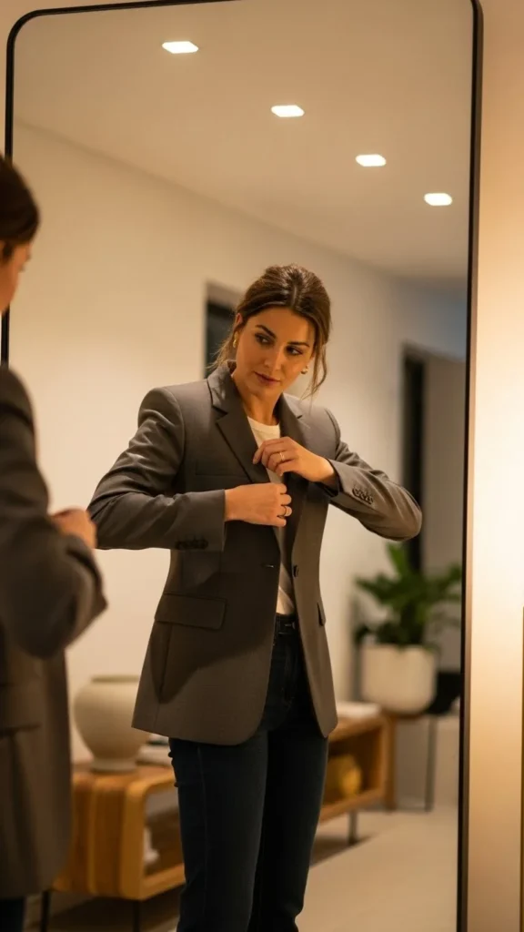 If you’re unsure, remove one item before heading out. Chic outfits are edited outfits.