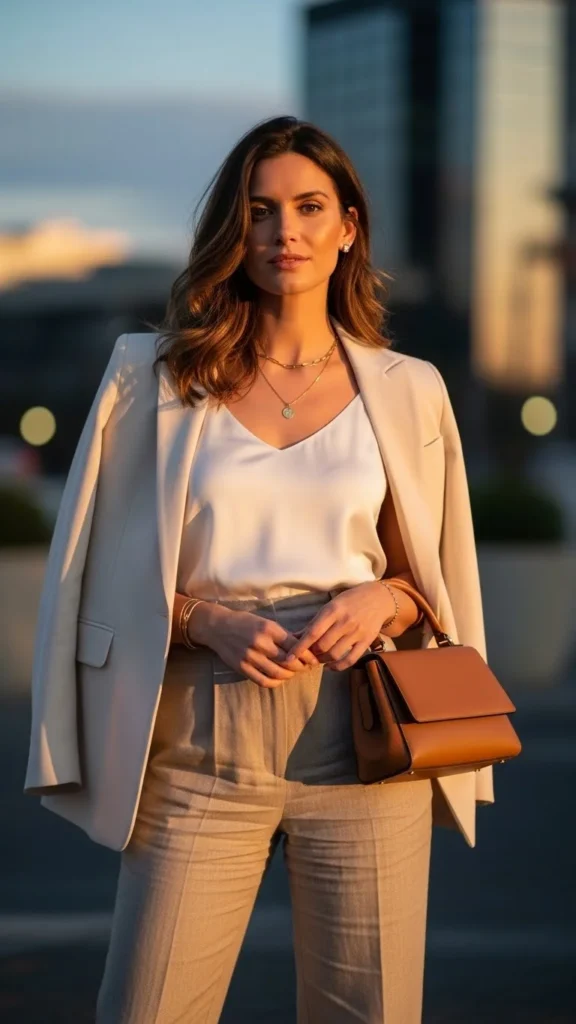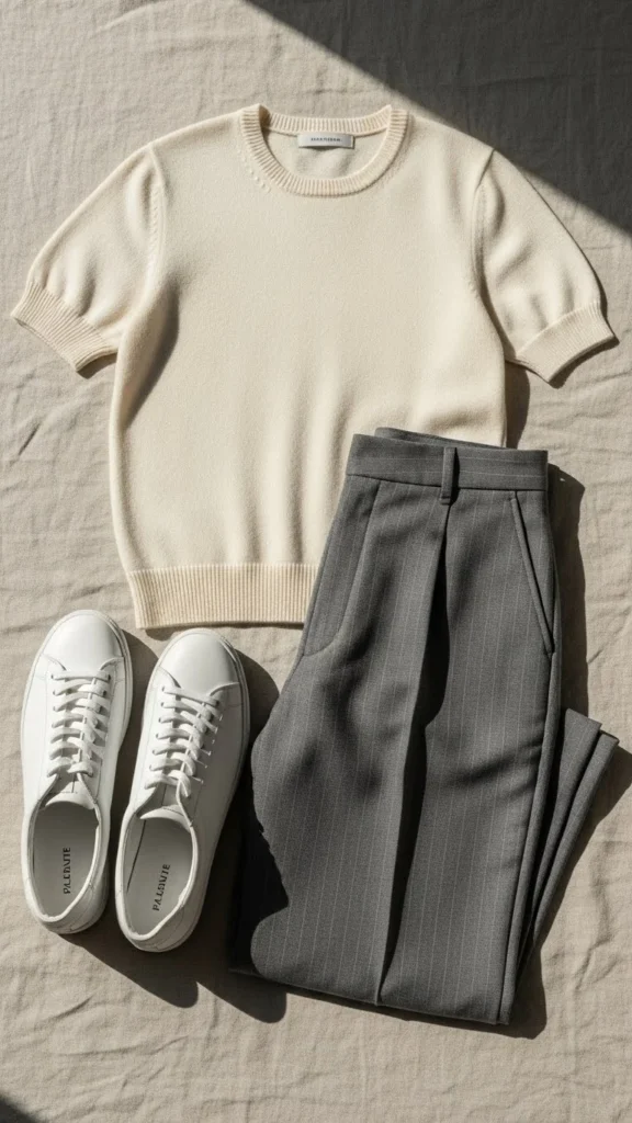 - A clean top with tailored trousers