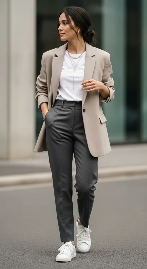 Basics often live in neutral territory, and that’s a strength. Keeping your color palette simple makes the outfit feel cohesive and refined.