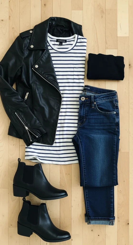 * For evening: A leather jacket can add instant edge.
