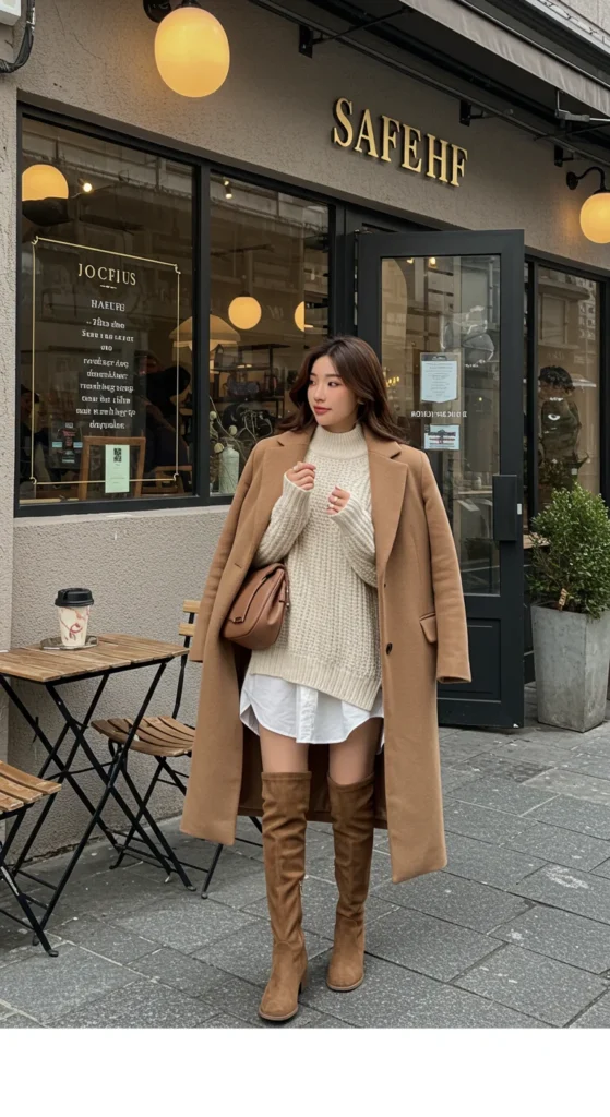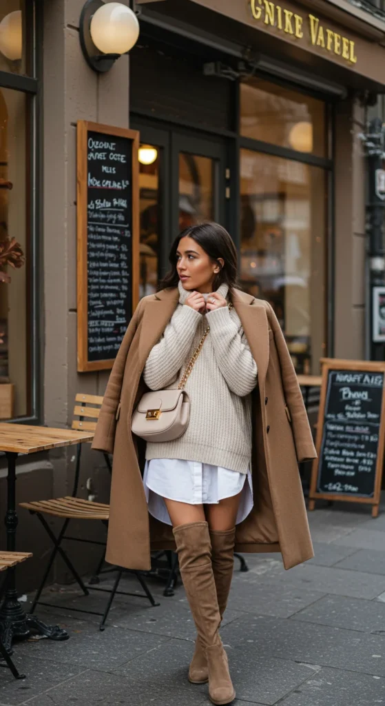 For instance, try wearing an oversized chunky sweater with a crisp button-down peeking from underneath. Add a tailored coat on top, and the result feels cozy yet intentional.