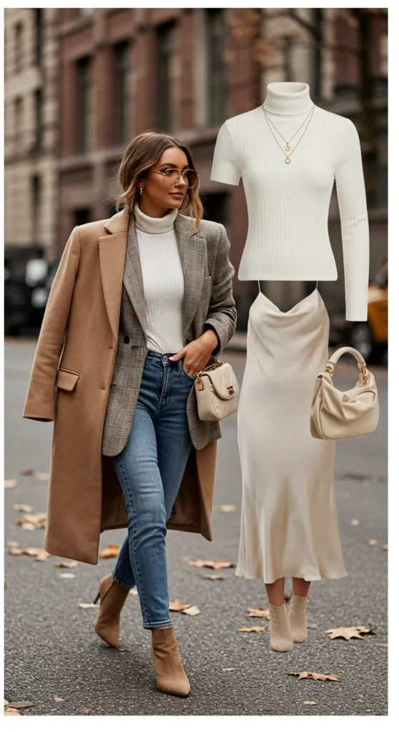 For example, a white turtleneck under a slip dress instantly adds both warmth and style. It’s a smart way to stretch your wardrobe while staying weather-appropriate.