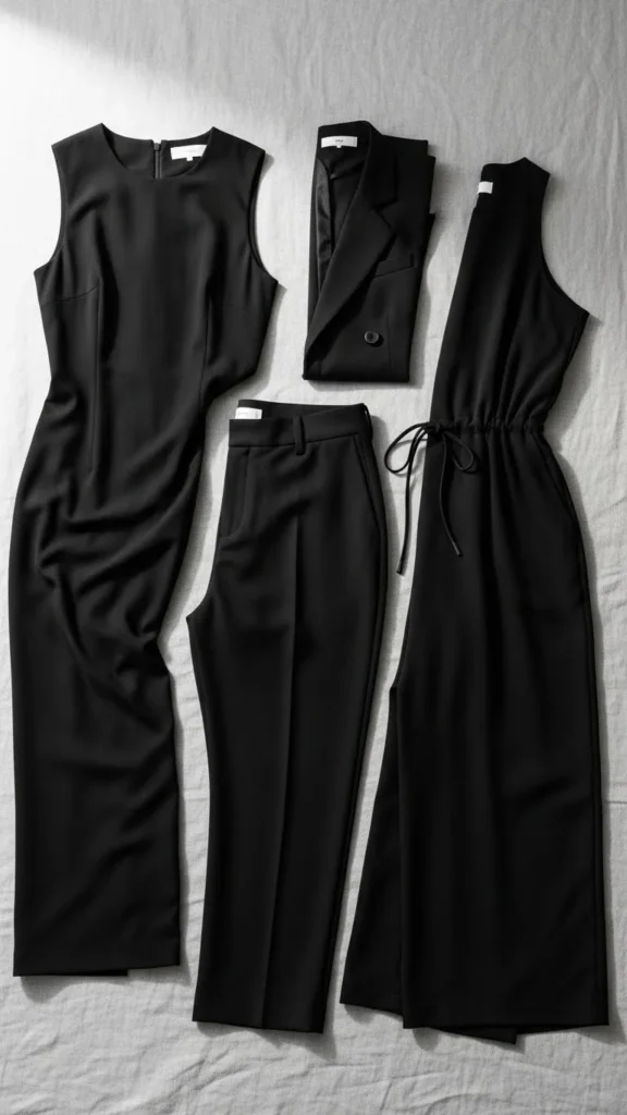 Every great black outfit begins with a strong foundation. The key is choosing a silhouette that suits the occasion and your body, rather than defaulting to whatever’s trendy.
