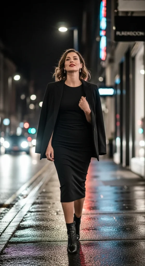 Avoid overly stiff or overly casual fabrics if you’re dressing for the evening. Movement and softness help the outfit feel night-appropriate.