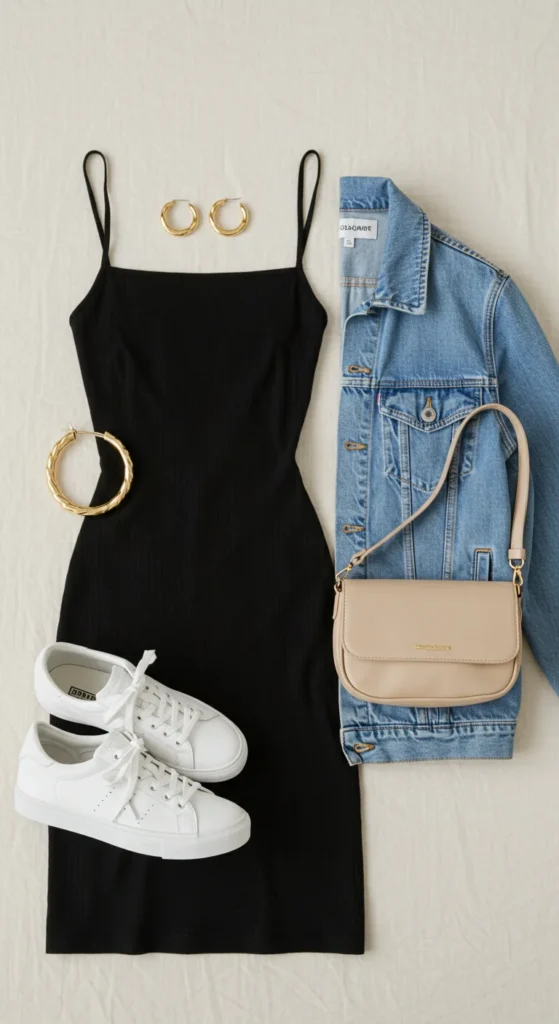 The beauty of an LBD is that it doesn’t have to feel “dressy.” You can tone it down for errands, coffee dates, or casual outings.