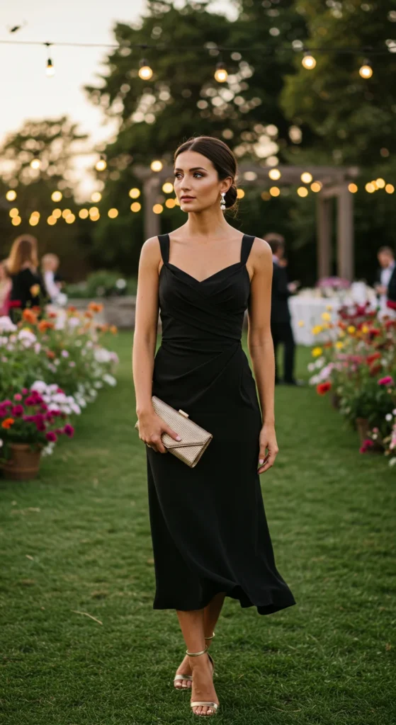 The little black dress is also a go-to for weddings—when styled with care.