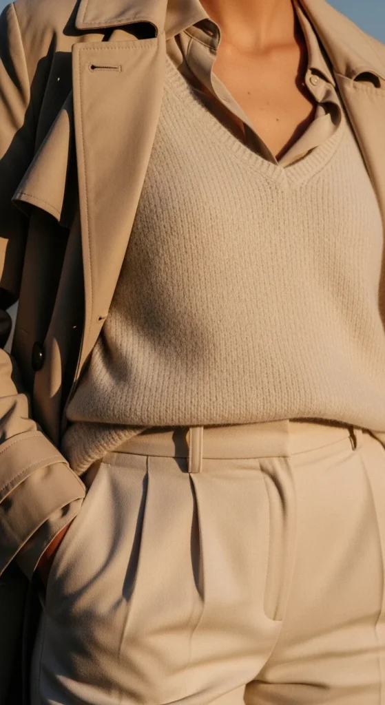 These subtle shifts add depth while keeping the outfit cohesive. Neutrals shine when they’re layered thoughtfully.