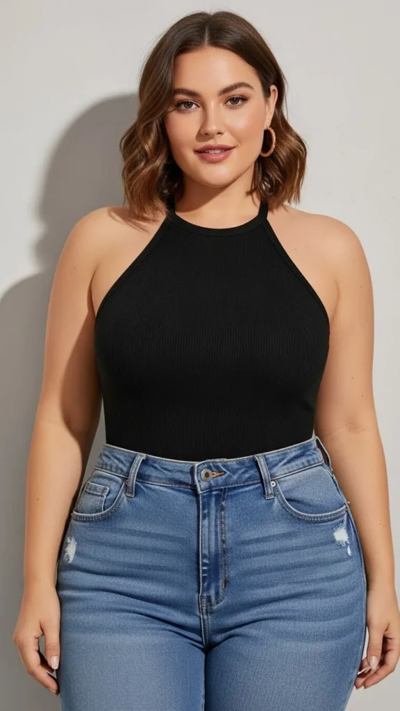 Hourglass figures shine in halter tops because the neckline draws attention upward while the fitted waist complements natural curves. Choose halters that support the bust and follow your shape without feeling too tight.
