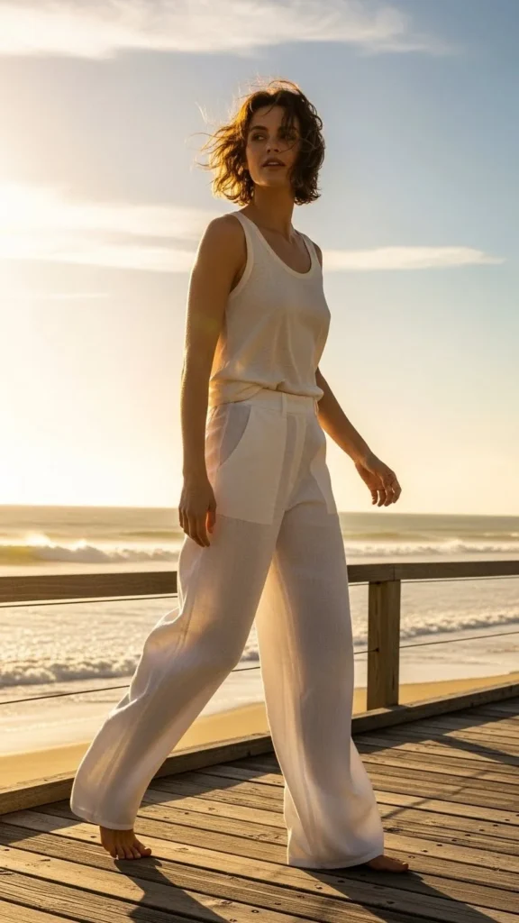- Cropped linen pants work beautifully with sandals or sneakers.