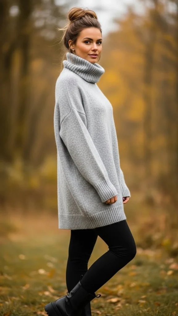 If you want something cozy for weekends or travel days, oversized turtlenecks are your best friend. They look effortless and chic when styled properly.
