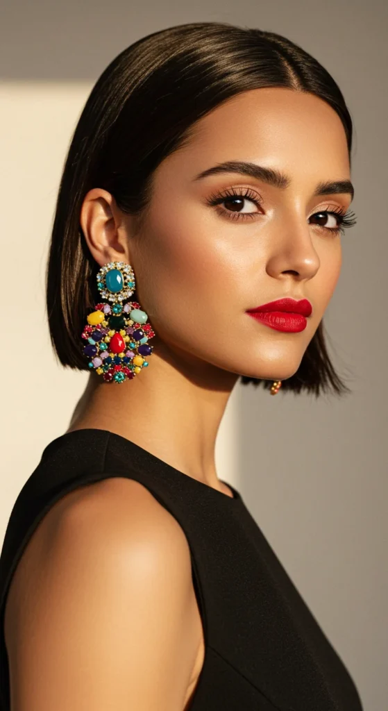 • Sleek hairstyles keep the overall vibe polished, while messy hair makes it feel more casual.