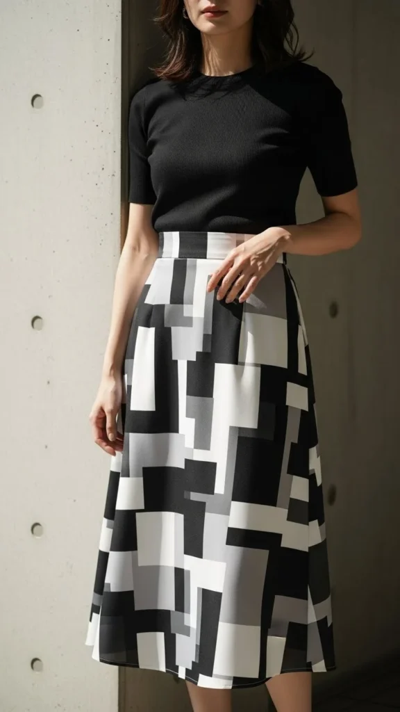 • A geometric skirt + simple knit top