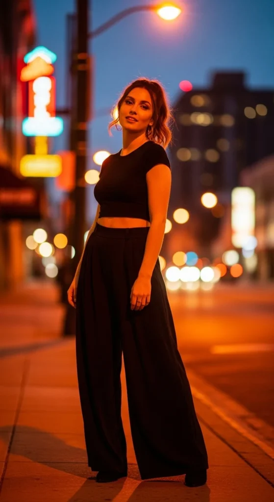 Crop tops shine when paired with contrast. If your top is fitted, go for flow below. If your top has volume, keep the bottom streamlined.